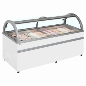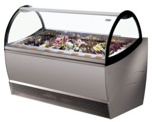 The design is actually rather similar between both gelato and ice cream equipment. Storage freezers often resemble commercial chest freezers and are available with solid or glass lids. Display freezers are typically more aesthetically pleasing, with a freezer well in which to hold ice cream or gelato pans and a glass cover or guard to protect products whilst on display. Customers can select their flavour and the Ice cream or gelato can be served straight from the display.